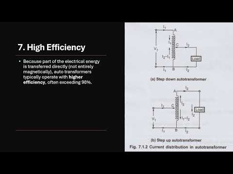 The auto transformer functions on the principle of electromagnetic induction, like all transformers. However, it also directly transfers a portion of electrical power via conduction, through the common winding. This means only a part of the power is transferred inductively, while the rest flows directly between input and output. This hybrid method of energy transfer leads to improved efficiency.